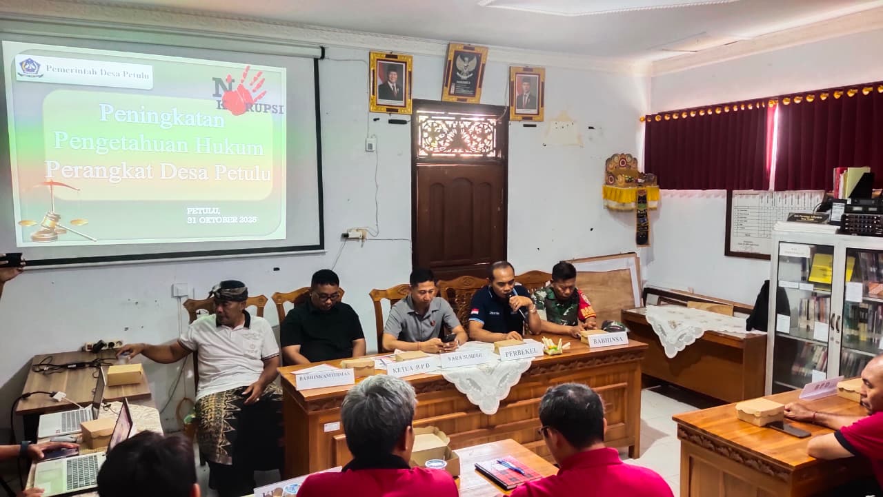 Jumat, 31 Oktober 2025 Telah dilaksanakan Sosialisasi Pencegahan Korupsi Dalam Pengelolaan Keuangan Dana Desa Di Kabupaten Gianyar. Acara yang berlangsung di Ruang Rapat Kantor Desa Petulu ini menjadi wadah penting untuk memperkuat literasi hukum perangkat desa, khususnya dalam pengelolaan keuangan dana desa serta upaya pencegahan tindak pidana korupsi. Pencegahan korupsi dalam pengelolaan dana desa di Gianyar dilakukan melalui sinergi antarpihak, program " Desa Antikorupsi ", sosialisasi , dan peningkatan transparansi serta partisipasi masyarakat. Polres Gianyar melalui IPDA I Komang Wiguna Arimbawa, S.H. Selaku Kanit III Tipidkor Polres Gianyar memberikan pengarahan, pendampingan, peningkatan kapasitas aparatur desa, dan pemanfaatan teknologi untuk memantau penggunaan anggaran